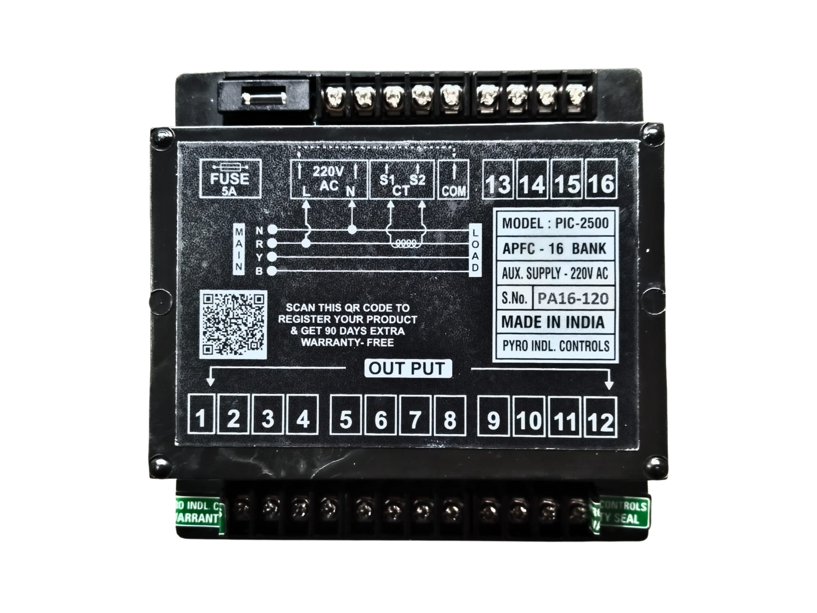 APFCs are designed to improve the power factor automatically whenever the power factor falls below a certain level. PF Relay means Automatic Power Factor Controller. Give system current and voltage to APFC. PF relay will do the rest. APFC will calculate the system power factor and turn on or turn off the capacitor bank according to requirements. APFC is designed to improve the power factor automatically whenever the power factor falls below a certain level.