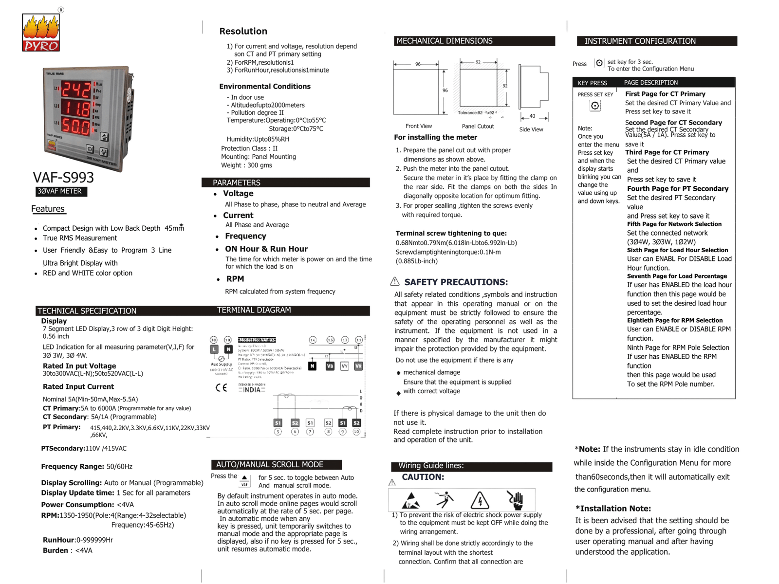 As well as a wide selection of voltage, current, and frequency ranges. This meter also provide for measurements of run hour & RPM.
