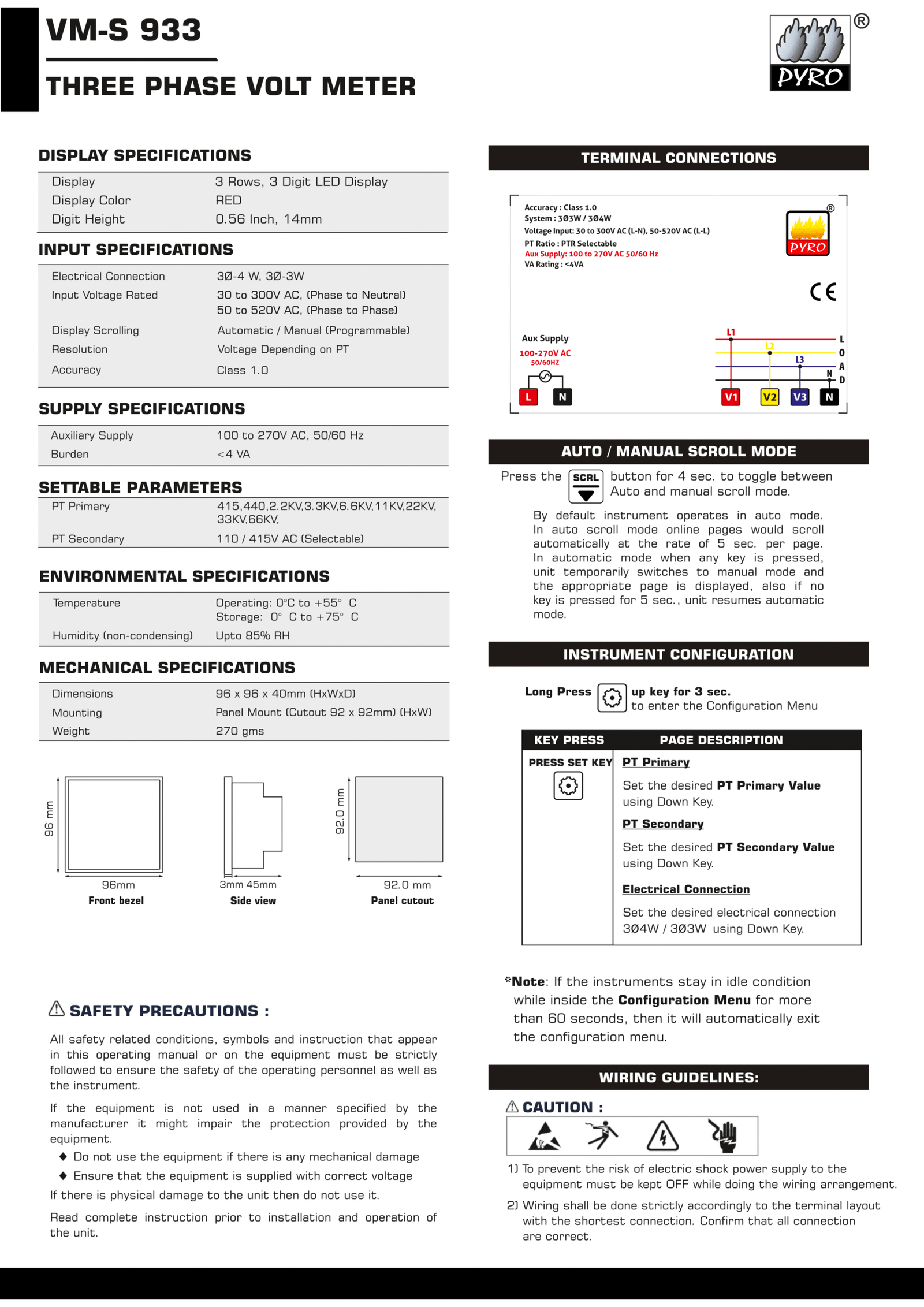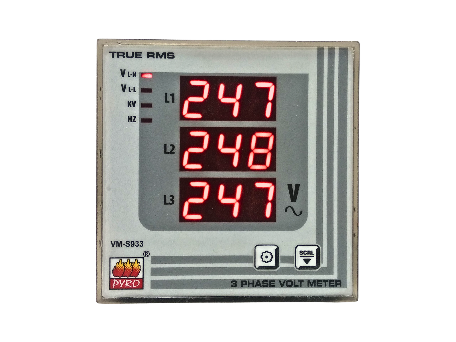 3 Phase Volt Meter is an instrument used for measuring the potential difference, or voltage, between two points in an electrical or electronic circuit.