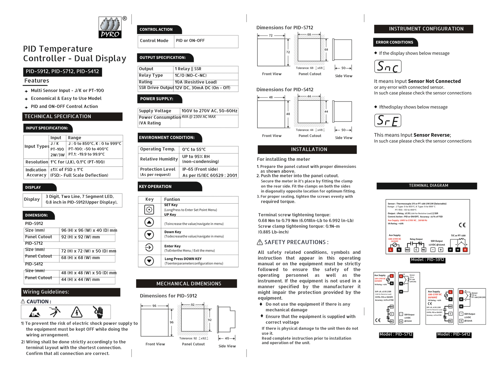 2- By entering target values and using the self-tune function the temperature controller automatically calculates the PID to directly control the process.